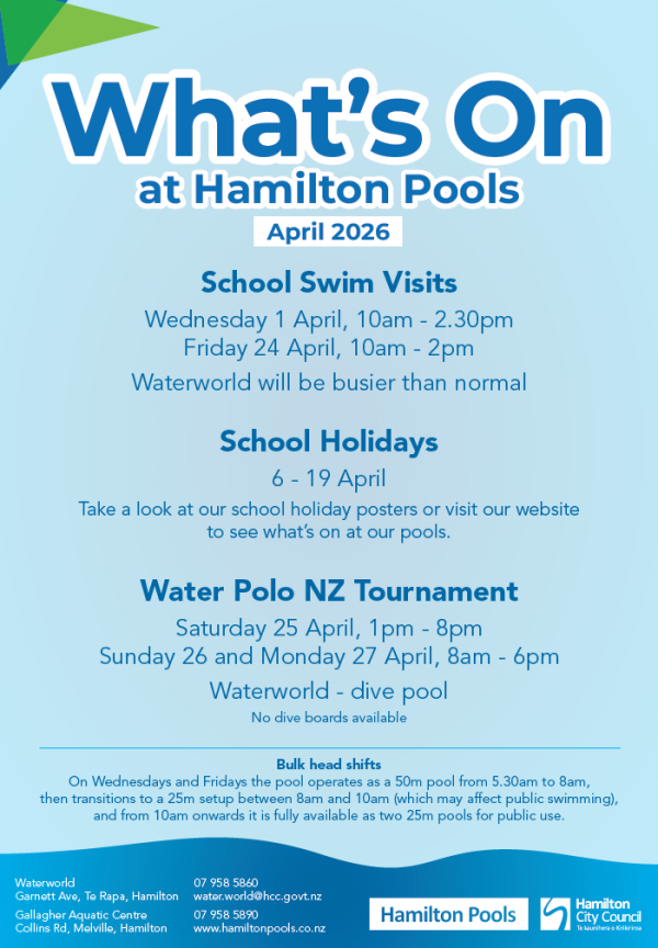 Our Outdoor Pool and Partner Pools are now closed for the season and will reopen next summer. Thanks for a great season. Stay in the loop by checking out our ' What's On' page for the latest updates and events happening at the pools.